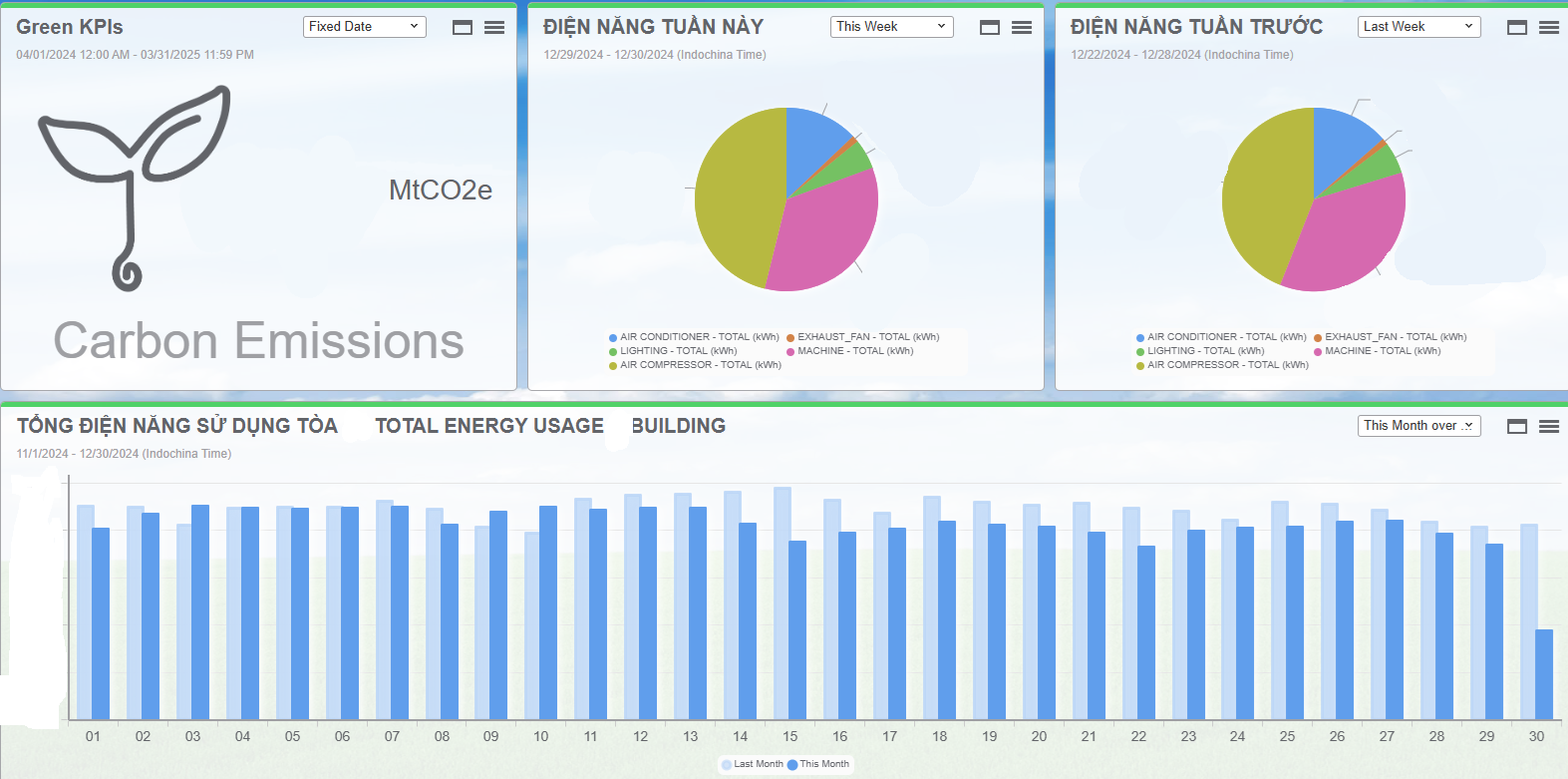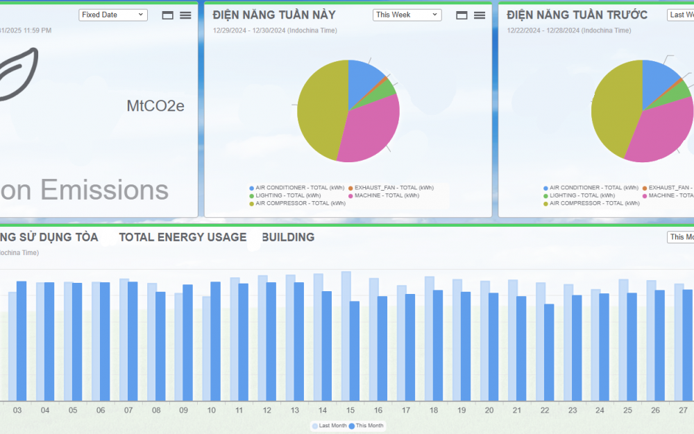 - Xuất báo cáo năng lượng tùy chỉnh & tự động theo nhu cầu quản lý – giúp các phòng ban dễ dàng đánh giá và ra quyết định.